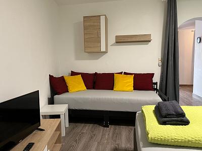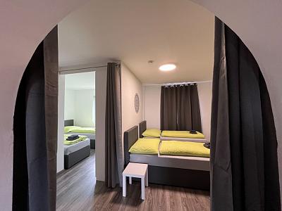 Im Apartment befinden sich ausschließlich hochwertige Einzelbetten (überwiegend Boxspringbetten) im Maße von 90 x 200 cm sowie ein Gästebett aus Holz (90 x 200 cm).