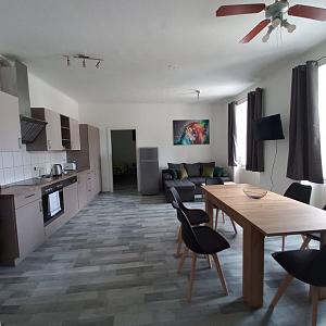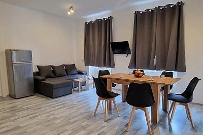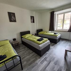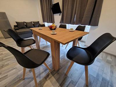 Das Apartments besteht aus 2 Schlafräumen mit insgesamt 5 Einzelbetten, Wohnzimmer mit Schlafcouch, Wohnküche, Bad/WC, Sat-TV, Free-WLAN.