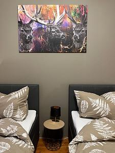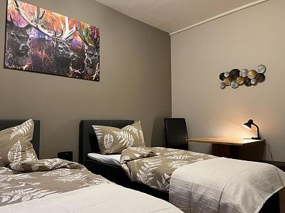 Wir bieten in unserem Apartment RAPHAEL am Schloss Wald in der Perschlingtalstr. 35, 3144 Pyhra-Wald, südlich der Landeshauptstadt St. Pölten (15 Minuten), Wien (45 Minuten) und Krems / Wachau (25 Minuten) ein Zweizimmer-Apartment mit 2 Boxspring-Einzelbetten sowie Riesen-Schlafcouch an.