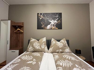 Wir bieten in unserem Studio DAVINCI am Schloss Wald in der Perschlingtalstr. 35, 3144 Pyhra-Wald ein Einzimmer-Apartment mit 2 Boxspring-Einzelbetten (90 x 200 cm) an, welche einfach und bequem zu einem Kingsize-Bett von 180 x 200 cm zusammengeschoben werden kann (ohne "Besucherritze").