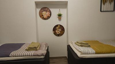 In dem Apartment befinden sich ausschließlich hochwertige Einzelbetten im Maße von 90 x 200 cm (teilweise Boxspringbetten).