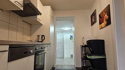 Das Apartment ist hochwertig ausgestattet mit kompletter Küche, Herd, Backofen, Kühlschrank, Geschirrspüler und Waschmaschine.