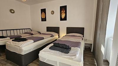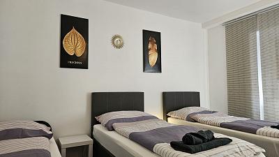 In dem Apartment befinden sich ausschließlich hochwertige Einzelbetten im Maße von 90 x 200 cm (teilweise Boxspringbetten).
