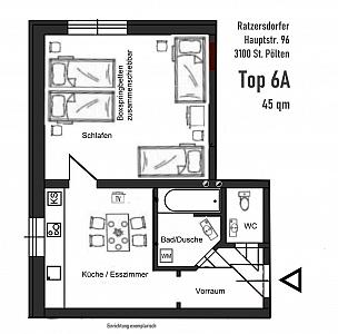 An der Adresse Ratzersdorfer Hauptstr. 96, 3100 St. Pölten steht Ihnen in der Geschäfts- und Wohnanlage dieses wunderschön eingerichtete Apartment Top 6A zur Verfügung.