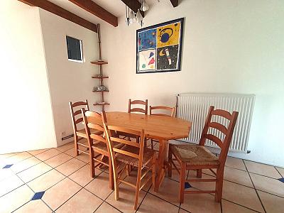 Im Erdgeschoss befindet sich die Küche inklusive Essbereich und das Tageslicht-Bad mit Dusche. Das angrenzende Schlafzimmer kann auch als Wohnzimmer genutzt werden. Der Sessel, das Einzelbett, das als Sofa dient und der Sat-TV mit deutschen und französischen Programmen und DVD Player laden zu gemütlichen Abenden ein.