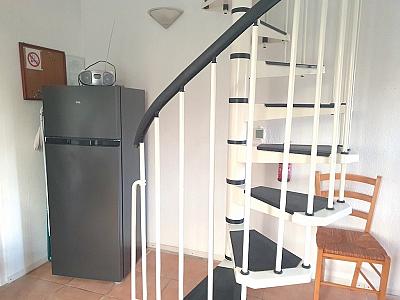 Im Erdgeschoss befinden sich eine gut ausgestattete Küche mit Essbereich und ein Badezimmer mit Toilette und Dusche.