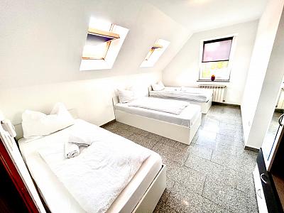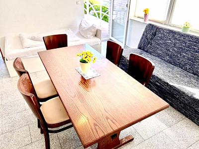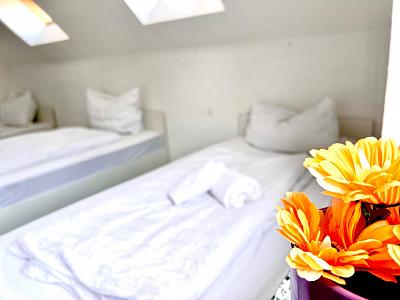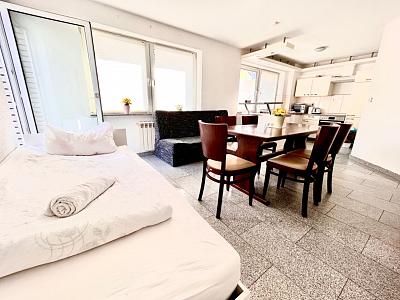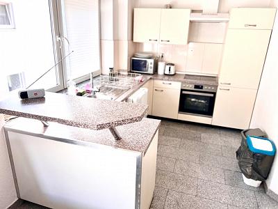 Drei -Zimmer-Wohnung für 6 Personen. Kostenlose Parkplätze auf dem Grundstück , free Wlan und eigene Einbauküche, Bad/Dusch/WC, Waschmaschine, Trockner, Dachterrasse, sind vorhanden. Frische Bettwäsche, Handtücher und Badetücher und Hygieneartikel werden kostenlos zur Verfügung gestellt. Einkaufscentrum, Fussgängerzone und ZOB in wenigen Gehminuten erreichbar.