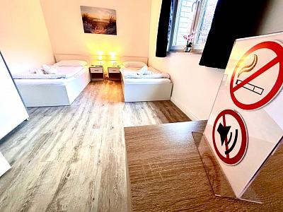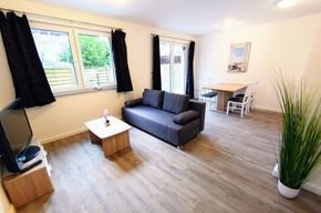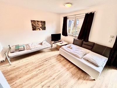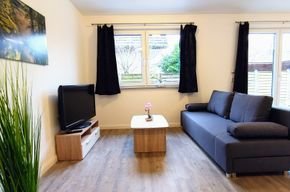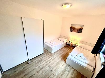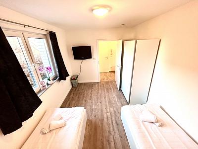 Diese Luxus Neubauwohnung mit 2 Zimmern ist optimal für 4-Personen-Gruppen. Parkplätze, WLAN, Hygieneartikel, Bettwäsche und Handtücher werden kostenlos zur Verfügung gestellt. Waschmaschinen und Trockner sind vorhanden. Unmittelbar in der Nähe befinden sich alle Einkaufsmöglichkeiten.