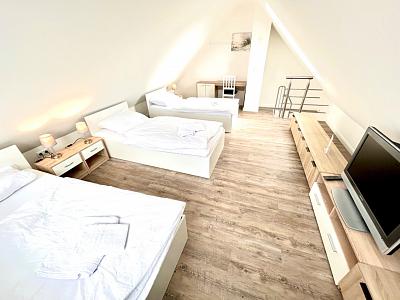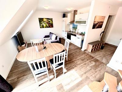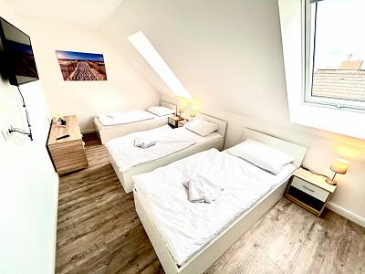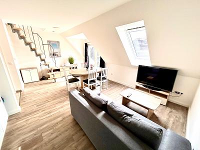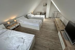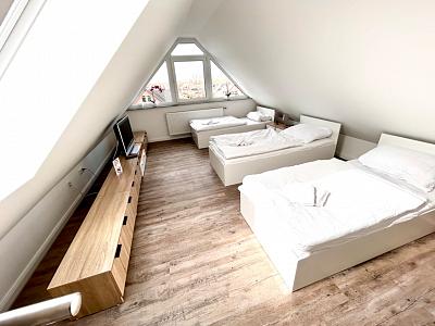 Diese Drei-Zimmer- Maisonette-Wohnung ist ideal für große Reise- und Geschäftsgruppen. Bettwäsche und Handtücher werden zur Verfügung gestellt. Kostenlose Parkplätze auf dem Grundstück können genutzt werden. Die Wohnung ist mit neuen Möbeln und einer Fußbodenheizung ausgestattet. In der Nähe gibt es viele Einkaufsmöglichkeiten sowie den ZOB. Im Waschkeller stehen mehrere Waschmaschinen und Trockner zur Verfügung. Wlan kann kostenlos genutzt werden.