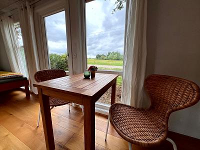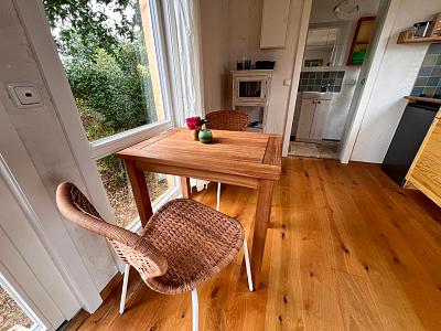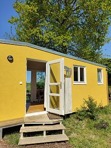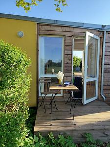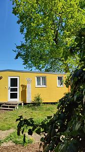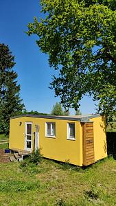 Unser Gartenhaus ist soweit wie möglich nachhaltig & ökologisch auf einer Wechselbrücke aufgebaut. Mit hochwertigen Materialien und kunstvollen Einrichtungsgegenständen schaut ihr über die kleine Terrasse auf die Pferdekoppel ins grüne.