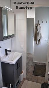 Küche: großer Kühlschrank mit Gefrierfach,Backofen, Kochfeld, Abzugshaube, Kaffeemaschine (Filter 1x4), Toaster, Wasserkocher, Töpfe, Pfannen, Kochutensilien, Geschirr, Besteck, Gläser, Erstausstattung an Spülmittel, Geschirrspültabs, Müllbeutel sind vorhanden, Weiterer Verbrauch und Geschirrhandtücher sind mitzubringen.