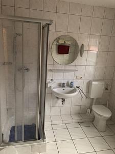 Das geräumige Badezimmer ist mit Dusche und WC.