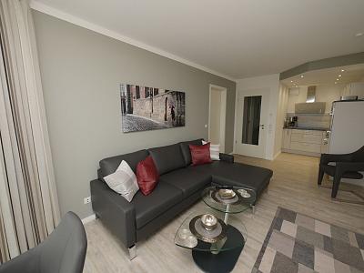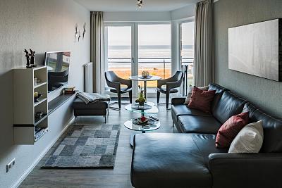 Die Ferienwohnung ist ca. 60 m² groß und ist für zwei Personen ausgelegt. Dank der Höhe im dritten Obergeschoss lässt sich vom Balkon aus die Nordsee, das Wattenmeer und der Strand sehr gut sehen. Ein schöner Meerblick aus dem Wohnzimmer und dem Schlafzimmer der Ferienwohnung sind quasi immer garantiert. Es stehen Ihnen ein komplett eingerichtetes Schlafzimmer mit Komfortmatratzen für einen erholsamen Schlaf zur Verfügung. Das Schlafzimmer verfügt über einen großen Kleiderschrank und Außenjalousien. Die Ferienwohnung bietet Ihnen eine Menge Komfort und Bequemlichkeit. Um dies noch zu steigern, versuchen wir Ihnen den Aufenthalt durch viele kleine Extras noch angenehmer zu machen. So bieten wir unseren Gästen im Strandpalais Duhnen in der Saison, bis Mitte Oktober, einen kostenlosen Strandkorb am Sandstrand von Cuxhaven Duhnen. Direkt vor dem Strandpalais!