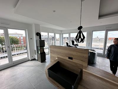 Unsere Neubauferienwohnung wird im Juli 2023 eröffnet und verfügt über Außenrollläden, eine offene Küche, Fußbodenheizung, begehbare Dusche und einen Kamin, der für gemütliche Abende sorgt. Bequem mit dem Aufzug zu erreichen, bietet unser Penthouse noch weitere Annehmlichkeiten wie eine Waschmaschine und ein Wäschetrockner im Gemeinschaftskeller sowie einen großen ebenerdigen Fahrradabstellschuppen.