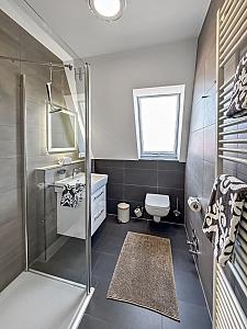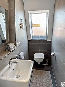 Die zwei Schlafzimmer mit Einzelbetten und das Schlafzimmer mit Doppelbett bieten genug Platz für die ganze Familie oder Freunde. Das großzügige Badezimmer verfügt über eine Dusche/WC, Fußbodenheizung und einen Handtuchtrockner für extra Komfort.