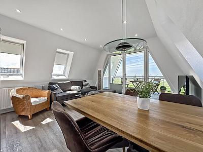 Willkommen im exklusiven Penthouse Dünenweg 37 mit atemberaubendem Meerblick! Diese luxuriöse 4-Raum-Wohnung bietet alles, was dein Herz begehrt. Genieße den Blick auf die Insel Neuwerk vom geräumigen Wohnzimmer aus oder entspanne auf dem großen Balkon im Süden und der gemütlichen Loggia im Norden.