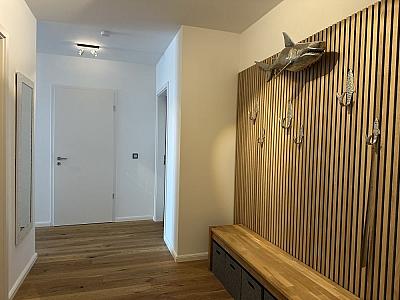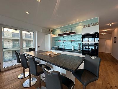 Die Wohnung besticht durch ihre exklusive Ausstattung: Ein offener Wohn- und Essbereich mit großer Kochinsel lädt zum gemeinsamen Kochen und Genießen ein. Drei liebevoll eingerichtete Schlafzimmer bieten Platz für bis zu sechs Personen ideal für Familien, Paare oder Freundesgruppen. Zwei moderne Badezimmer mit ebenerdigen Duschen sowie ein Waschtrockner sorgen für zusätzlichen Komfort im Alltag.