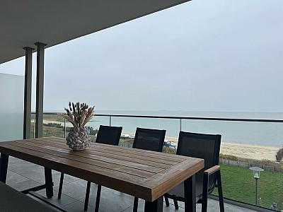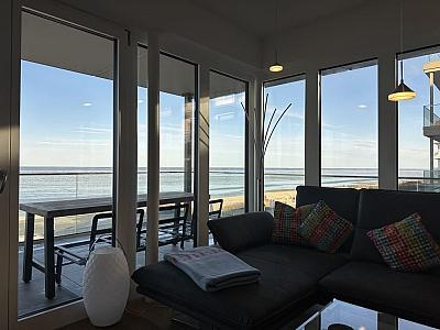 Der große Balkon mit eigenem Strandkorb und mit unverstelltem Blick auf Strand und Meer wird Ihr Lieblingsplatz sein.