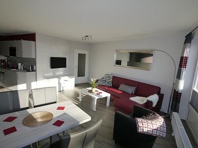 Die Ferienwohnung hat Ihnen viel zu bieten, gebucht werden kann Sie 2 Personen und das zu einem mehr als guten Preis. Sie können ein großes Schlafzimmer beziehen, mit einem großen Bett und einem recht großen Kleiderschrank. So werden Sie sich nie über Platzmangel im Schrank beschweren können. Der Wohnbereich ist großzügig geschnitten und trotz integrierter Küche, ist diese absolut nicht störend, sondern gehört zu dem schönen Gesamtbild dazu. Sie können von der Couch aus einen Blick über den Strand genießen und werden begeistert sein. Sie können im Essbereich sitzen, um dort zu spielen oder zu essen. Ansonsten gibt es selbstverständlich auch die Möglichkeit, einen Flachbildfernseher zu benutzen. Die gesamte Ferienwohnung Nr.28 ist perfekt eingerichtet und besitzt die modernsten Möbel. Das Badezimmer hat eine geräumige Dusche aufzuweisen und ist nicht zu eng. Sie werden sich darin wohlfühlen! Weiterhin bieten wir einen großen Balkon, der selbstverständlich über Möbel verfügt. So können Sie es sich richtig bequem machen.