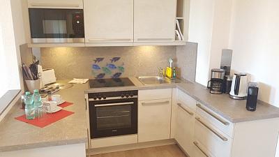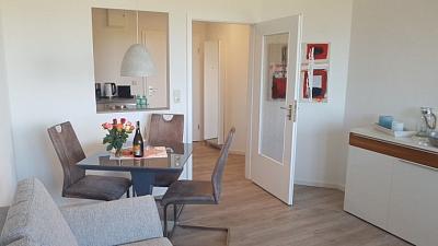38m² 2 Zimmer Nichtraucher Apartment für 1-2 Personen, Wohnzimmer, überdachter Balkon, Schlafzimmer mit Doppelbett, Küchenzeile, Spülmaschine, Duschbad (14cm Duscheinstiegshöhe), Parkplatz, Fahrstuhl, 3. Etage, WLAN, Schwimmbad, Sauna, Dachterrasse 4. Etage, keine Haustiere erlaubt, nicht behindertengerecht.