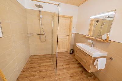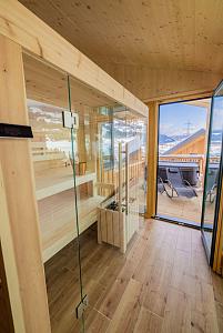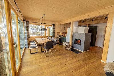 135 m², 3-4 Schlafzimmer (7-9 Betten), 2 Badezimmer, 2 WC, Küche, Wohnraum mit Gaskaminfeuer oder Holzkachelofen, Terrasse, teilweise Wintergarten, Sauna, Whirlpool und Carport.