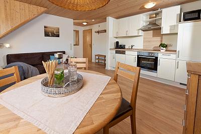 Unsere beliebte Ferienwohnung Lindau im Landhaus Hoher befindet sich im 2. OG und bietet auf 55 qm bis zu 5 Personen Platz.