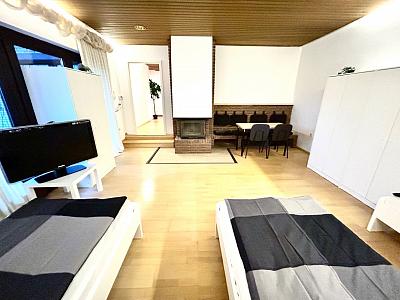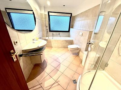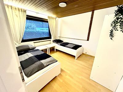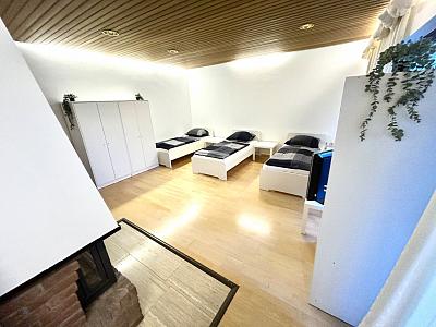 In einem Bungalowhaus steht eine komplette Etage zur Verfügung. Diese umfasst vier separate Zimmer, zwei Badezimmer mit Dusche und WC sowie eine großzügige Küche. Darüber hinaus gehören drei Stellplätze, ein Garten sowie die Nutzung der Terrasse zum Angebot.