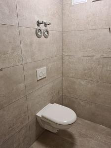 Bad mit WC, Regendusche und Fön, Toilettenpapier, Duschseife, Handseife