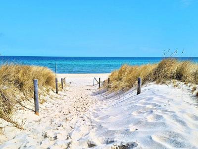 Zum Südstrand sind es 10 Gehminuten. Hier wurde Anfang des Jahres der ganze Strandabschnitt mit feinem weißen Seesand aufgefüllt. Den Südstrand dürfen Sie ohne Einschränkungen für Ihre Spaziergänge und Ihren Badespaß im Urlaub mit Hund nutzen.