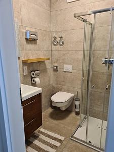 Bad mit WC, Regendusche und Fön, Toilettenpapier, Duschseife, Handseife