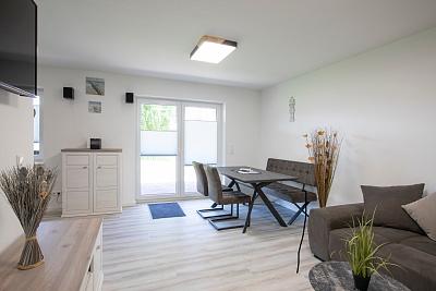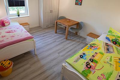 Unsere neu erbaute barierrefreie Ferienwohnung 2 (Erstbezug Mai 2021) bietet auf 80 m² Platz bis zu 5 Personen. Das gemütliche Elternschlafzimmer, sowie das geräumige Kinderzimmer laden zum erholsamen Schlafen ein. In der Wohnung befindet sich ein helles Duschbad mit WC. Die voll ausgestattete Küche mit Spülmaschine, Kaffeemaschine, Toaster, Wasserkocher, Mikrowelle, Kühl- und Gefrierfach, Töpfe, Pfannen, Geschirr, Besteck, etc. lässt keine Wünsche offen.Im großzügigen, lichtdurchfluteten Wohnraum erwartet Sie ein Smart TV, ein Radio mit CD Player und ein kostenloser WLAN Glasfaser-Anschluss um immer Up to Date zu sein.