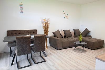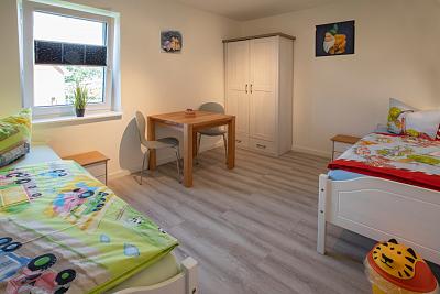 Unsere neu erbaute barierrefreie Ferienwohnung 3 (Erstbezug Mai 2021) bietet auf 80 m² Platz bis zu 5 Personen. Das gemütliche Elternschlafzimmer, sowie das geräumige Kinderzimmer laden zum erholsamen Schlafen ein. In der Wohnung befindet sich ein helles Duschbad mit WC. Die voll ausgestattete Küche mit Spülmaschine, Kaffeemaschine, Toaster, Wasserkocher, Mikrowelle, Kühl- und Gefrierfach, Töpfe, Pfannen, Geschirr, Besteck, etc. lässt keine Wünsche offen.Im großzügigen, lichtdurchfluteten Wohnraum erwartet Sie ein Smart TV, ein Radio mit CD Player und ein kostenloser WLAN Glasfaser-Anschluss um immer Up to Date zu sein.