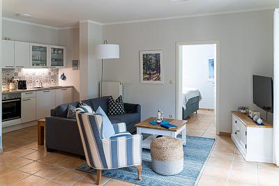 Die Ferienwohnung "Glück" mit moderner Küche, einer kuscheligen Sitzecke und einem hochwertigen Boxspringbett für einen erholsamen Schlaf lässt keine Wünsche offen.