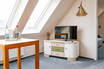 Funktional und bequem. Lehnen Sie sich zurück und genießen Sie die 35 qm. des neuen Studios unter dem Dach. Mit stilvoller Deko und viel natürlichem Licht ist unser modernes Studio die perfekte Kombination aus Funktion und Komfort. Ideal für Ihren Urlaub