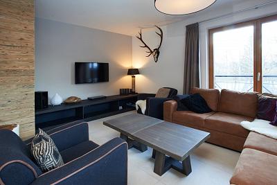 Dieses Apartment ist für 6 Personen geeignet und durch die Kombination mit Holzakzenten sehr schön gestaltet. Das große und von Licht durchflutete Wohnzimmer ist ausgestattet mit einem großen Esstisch, einer gemütlichen Sitzecke wo Sie sich entspannen können und hat direkten Zugang zur Gartenterrasse.