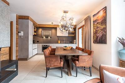 Das schöne Design mit Holzakzenten macht diese Wohnung komplett. Das große Wohnzimmer mit offener Küche bietet einen großen Esstisch und eine gemütliche Sitzecke mit offenem Kamin zum Verweilen. Von dort haben Sie direkten Zugang zum 17m² großen Balkon. Das Apartment verfügt über 3 Schlafzimmer mit Flachbildfernseher und 2 Badezimmer, jeweils mit Dusche und WC, eines davon zusätzlich mit Badewanne. Im Untergeschoss finden Sie Ihren Parkplatz vor und können den Skiraum mit Schuhtrockner sowie Waschraum mit Waschmaschine und Trockner benutzen.