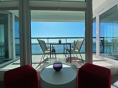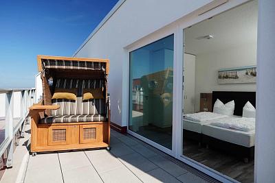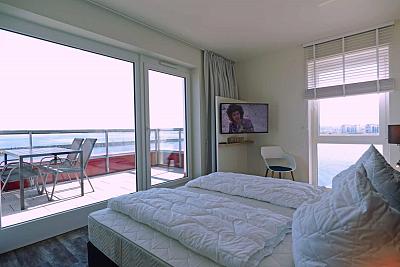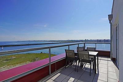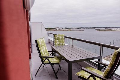 Auf dem ca. 20 m" großen und nach Nord-West ausgerichteten Balkon hat man nicht nur einen tollen Blick auf die Ostsee, sondern auch einen herrlichen Blick auf den Jachthafen.
