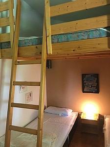 2 bis 3 Schlafzimmer mit Doppelbett oder getrennten Betten. Z.T. Schlafgalerie (für Kinder ab 5 Jahren) über eine Treppe erreichbar.