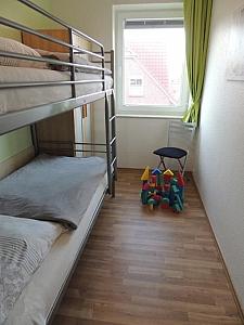 Schlafzimmer entweder mit einem Einzelbett, zwei getrennten Betten oder Etagenbett