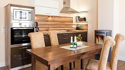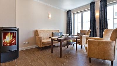Jede Ferienwohnung hat eine eigene Sauna, W-LAN, Kamin und ist mit einem Fahrstuhl erreichbar.