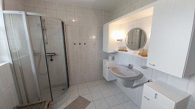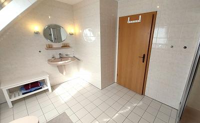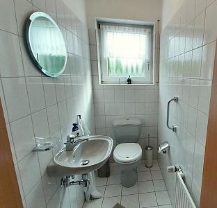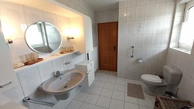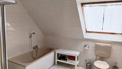 1 Duschbad mit Badewanne, WC, Waschbecken und Fön