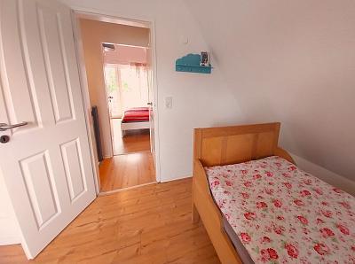 Das dritte Schlafzimmer liegt im Erdgeschoss und bietet ein Einzelbett (0,90 x 2,00 cm).