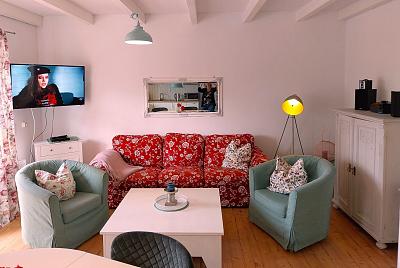 Zu Ihrer Unterhaltung und Entspannung finden Sie dort auch einen Flachbild-TV mit Blue-Ray-Player, eine Kompaktanlage (Radio-CD-Player, Bluetooth, DAB) sowie eine kleine Spiele-Sammlung. Das W-LAN mit Gastzugang (Surfen und E-Mail) steht Ihnen kostenfrei zur Verfügung.
