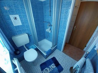 Dusche, WC und Waschbecken.