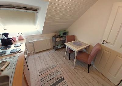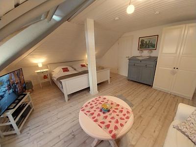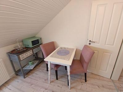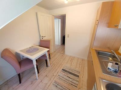 Die gemütliche Dachgeschoß-Wohnung wurde Ende 2024 renoviert und ist im Landhausstil eingerichtet. Die hell gestrichenen Wände und die weißen Zimmertüren sorgen für ein angenehmes Wohnambiente.