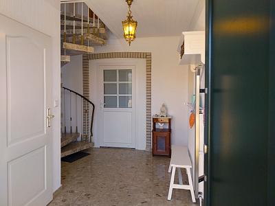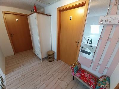 Der Schrank im Hausflur, welcher zu den Ferienwohnungen führt, enthält neben diversen Reinigungsutensilien (Besen, Staubsauger
