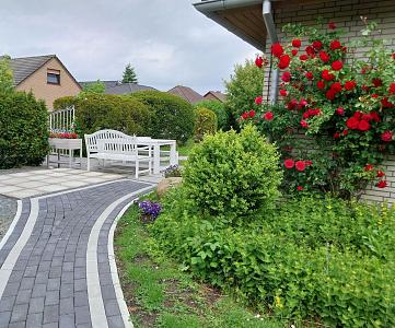 | Im eigens für Gäste reservierten Gartenbereich (wird zurzeit noch Angelegt) rechts des Haupteingangs finden Sie eine überdachte Terrasse (Süd-West-Richtung). Auf den dort verfügbaren Gartenmöbeln können Sie an entspannten Tagen und Abenden die Sonne genießen, oder einen schönen Grillabend verbringen. Sonstiges: Ein Parkplatz ist direkt an der Unterkunft kostenfrei verfügbar. Vor dem Haus befindet sich ein abschließbarer Fahrradschuppen mit Stromanschluss Bitte beachten: Die Außenanlage befindet sich aktuell noch in der Fertigstellungsphase! |
