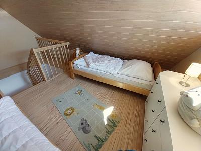 Im, nach unten offenen, Dachgeschoß finden sich zwei weitere Einzelbetten.