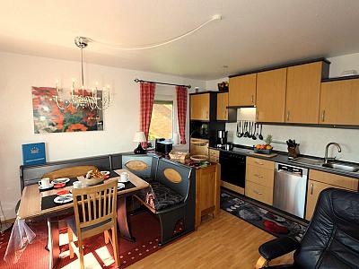 Separater Essplatz mit voll ausgestattetem Küchenbereich mit Geschirrspüler.